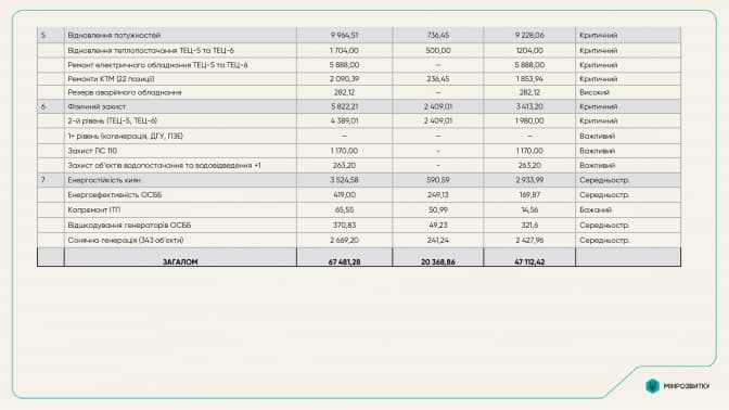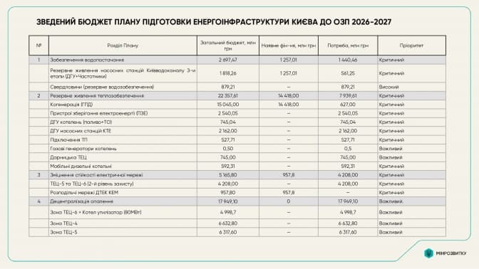 Посадовець оприлюднив відкриту частину документа, яка не містить інформації з обмеженим доступом. У ній викладені ключові пропозиції щодо посилення захисту критичної інфраструктури столиці, резервування об’єктів енергетики, забезпечення стабільної роботи систем теплопостачання та водопостачання, а також параметри фінансування і дефіциту за окремими напрямами.