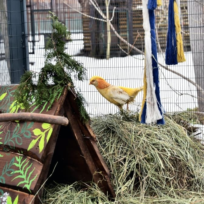 У вольєрах фруктового саду вже встановили затишні оселі для різних видів фазанів, серед яких: