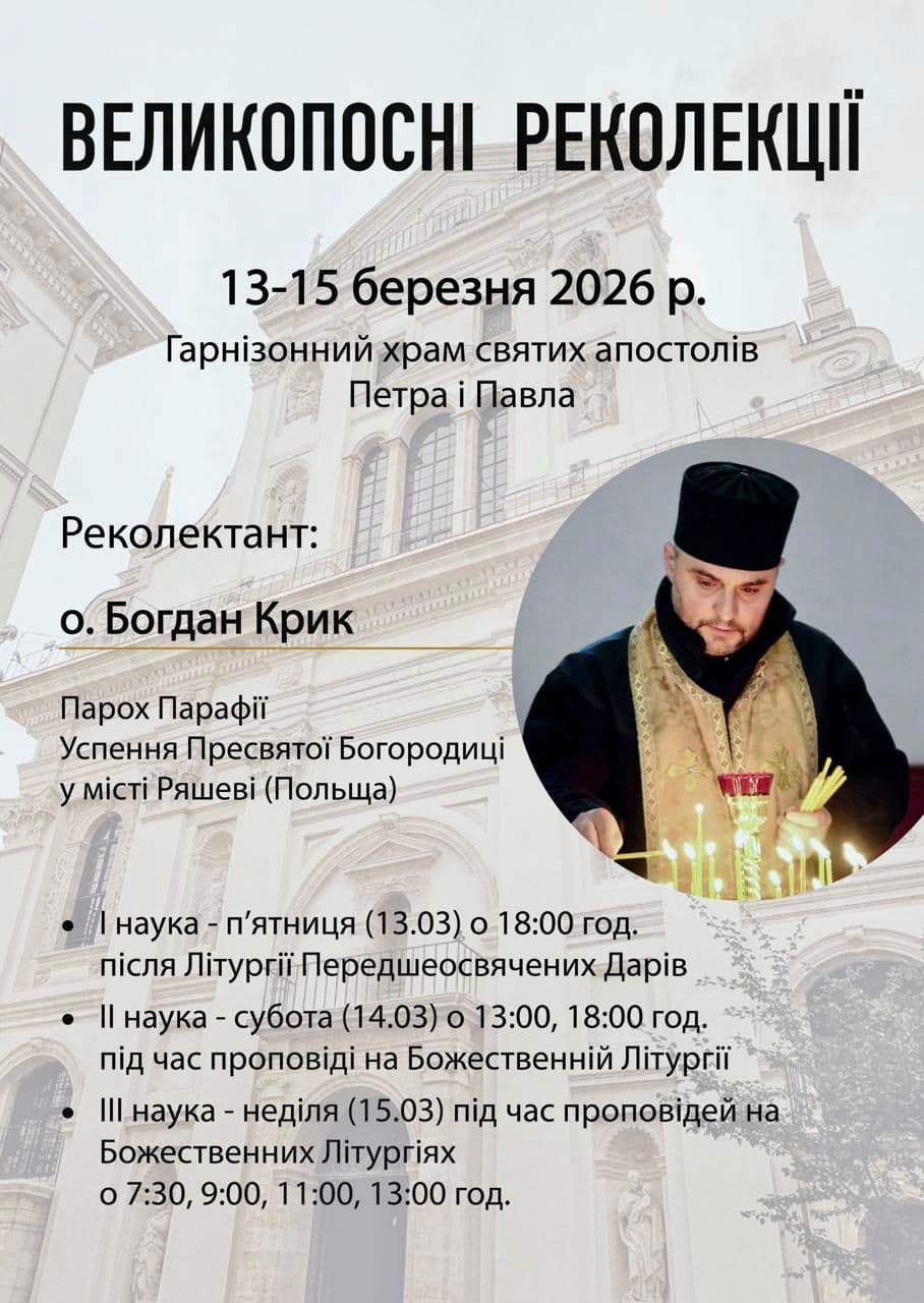 Львів’ян кличуть на реколекції в Гарнізонному храмі