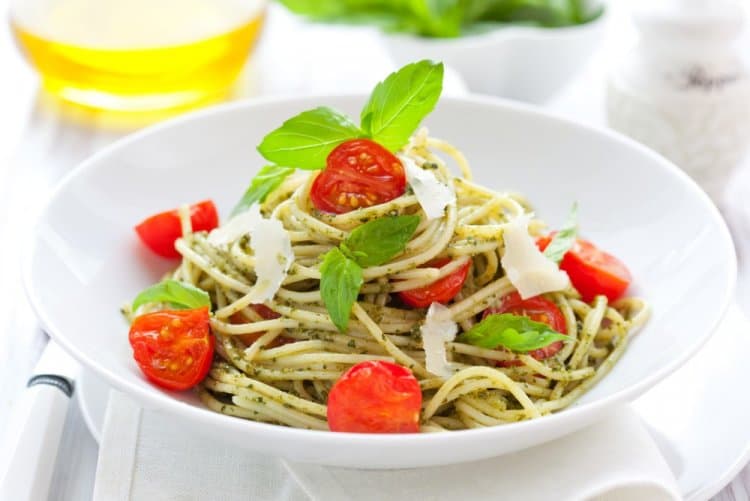 Паста з соусом песто та томатами