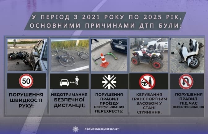 За даними поліції Львівської області, у 2025 році кількість ДТП за участю двоколісного транспорту зросла на 41% порівняно з 2021 роком.