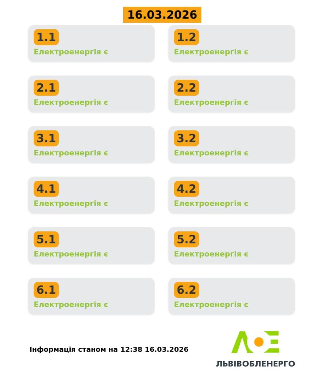 «Львівобленерго» оновило графіки відключень світла на Львівщині на 16 березня.