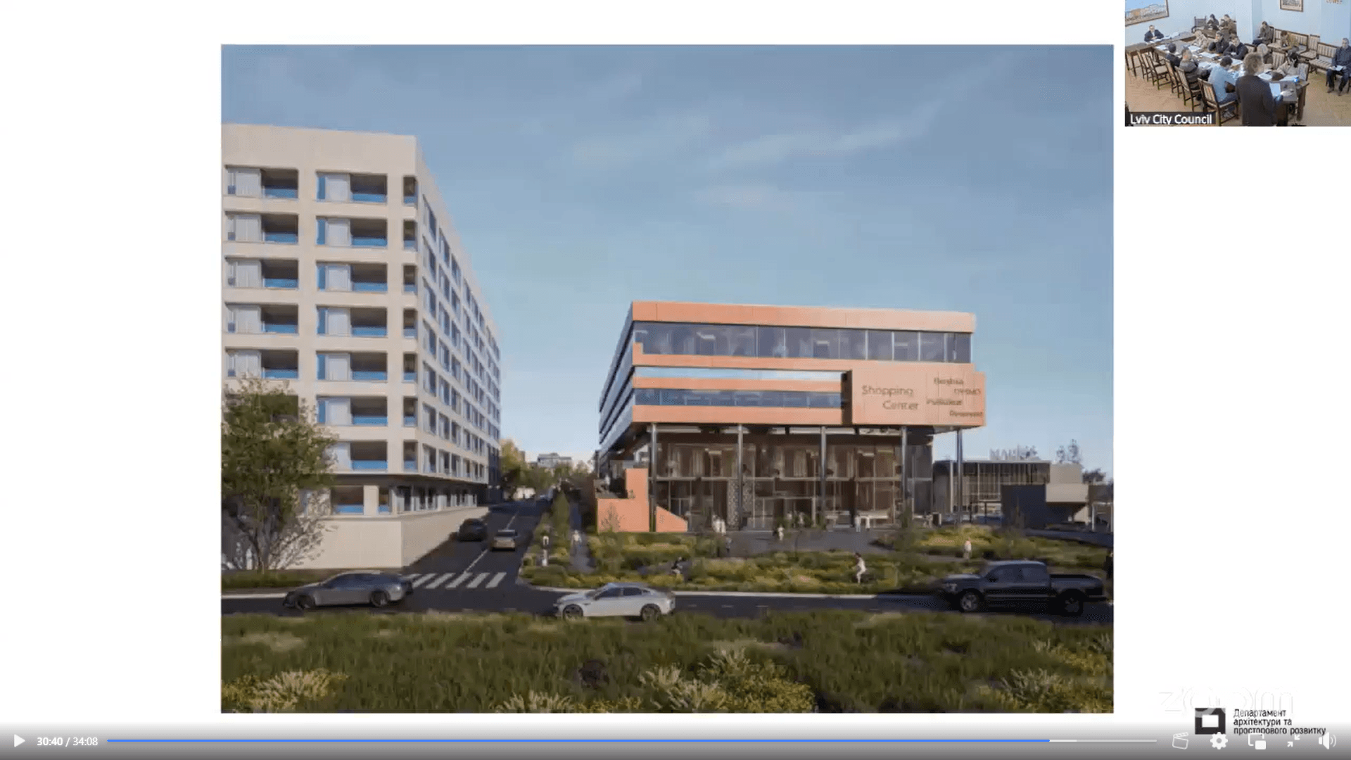 візуалізація торгово-економічного центру на вул. науковій, 7/ скриншот з відео виконкому лмр