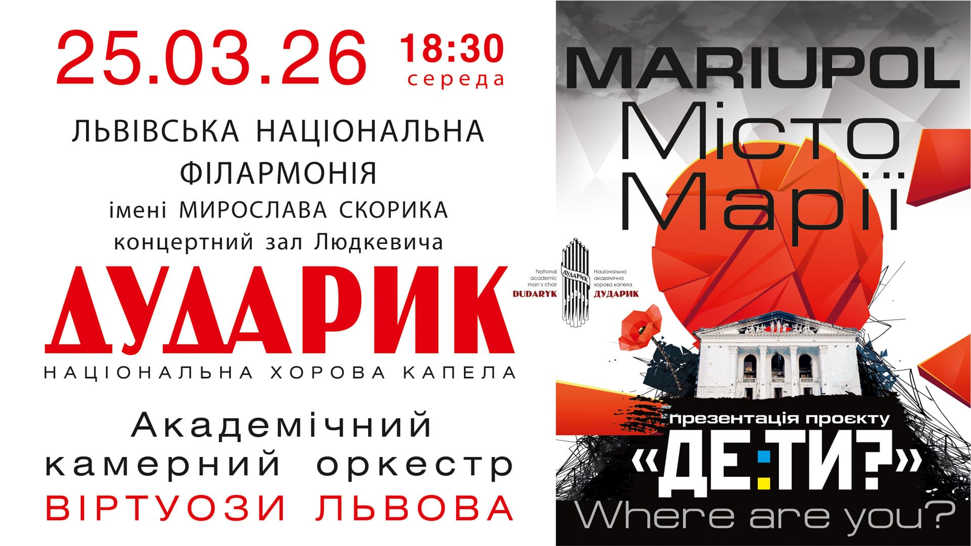 25 березня у Львівській національній філармонії імені Мирослава Скорика відбудеться концерт-реквієм «MARIUPOL. Місто Марії». Подію присвятять пам’яті жертв війни Росії проти України, зокрема трагедії Маріупольського драматичного театру, зруйнованого авіабомбардуванням 16 березня 2022 року.
