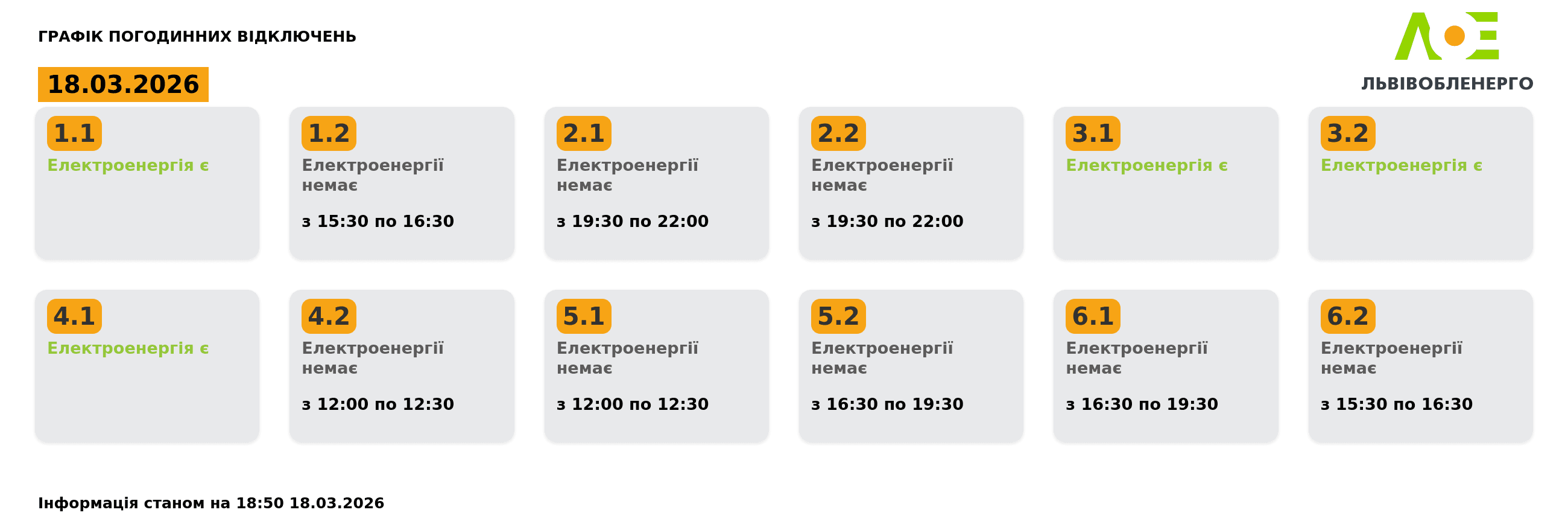 «Львівобленерго» знову оновило графіки відключень світла на Львівщині на 18 березня.