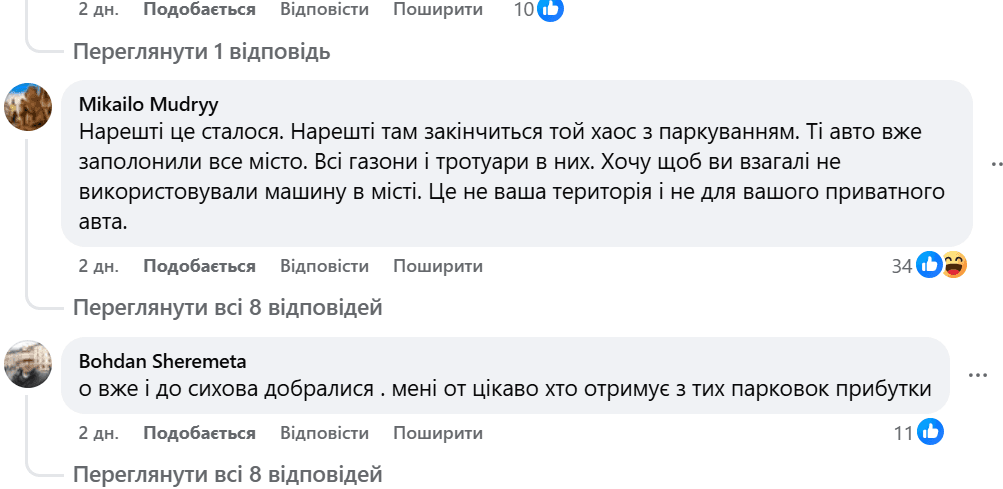 «Тепер і мешканці Сихова мають змогу легально і за адекватну плату припаркувати свої авта. Нарешті урбаністика дісталася і Сихова. Треба ще виділені смуги на Червоної Калини і Сихівській намалювати».