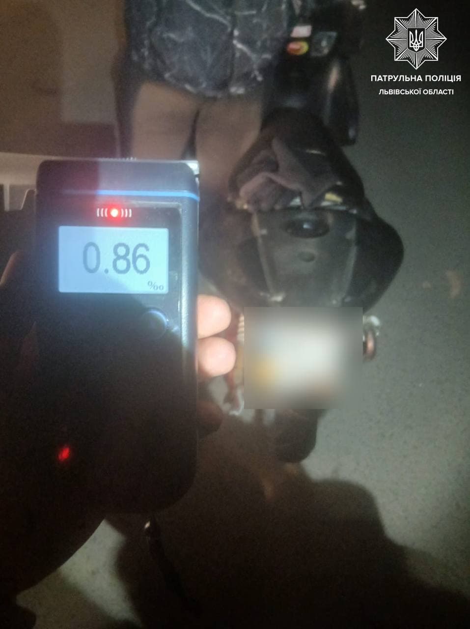 Інцидент стався під час комендантської години. Правоохоронці зупинили мотоцикл Yamaha JL50 та під час спілкування з водієм помітили у нього ознаки сп’яніння. Перевірка на пристрої Драгер показала 0,86 проміле алкоголю.