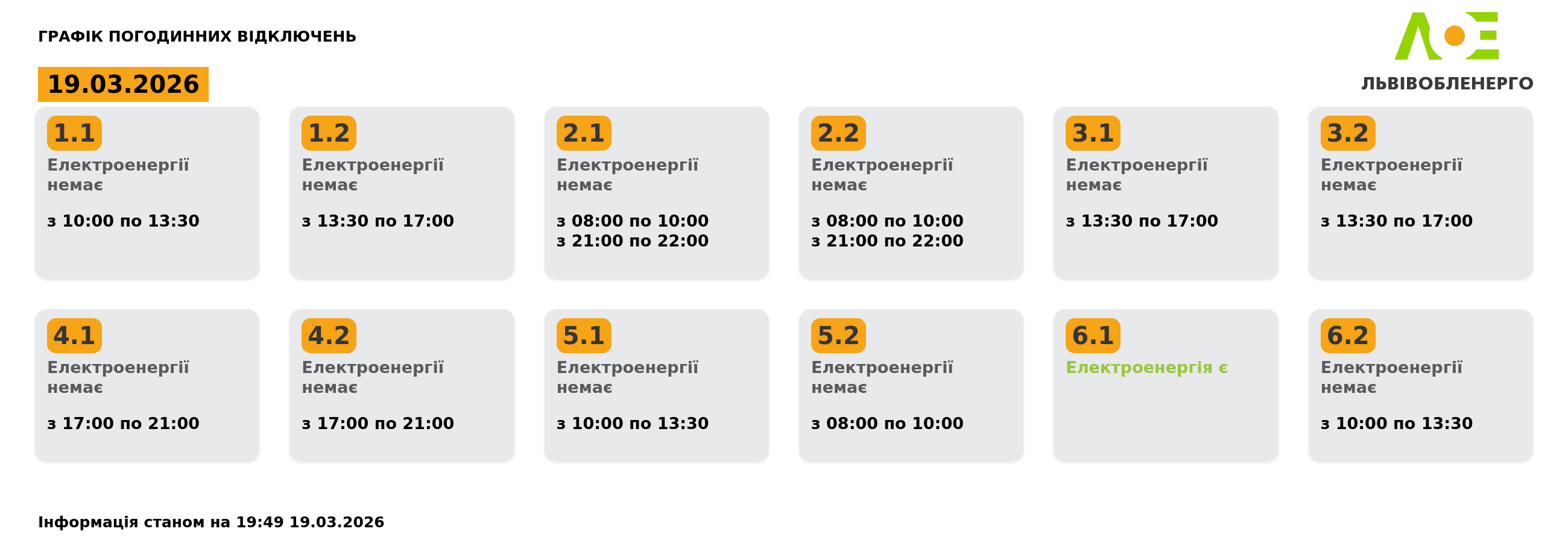 Львівобленерго опублікувало оновлені графіки відключень світла на 19 березня.