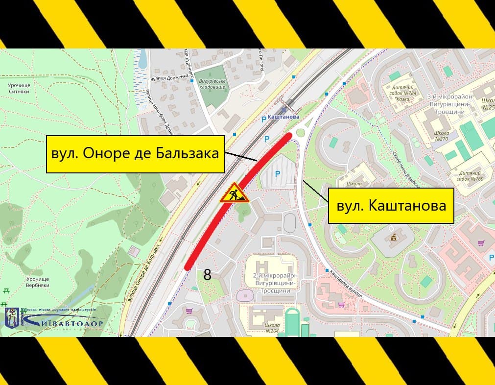 Дорожні служби працюватимуть на ділянці від вулиці Каштанової до будинку під номером 8, де оновлюватимуть верхній шар асфальту. Роботи триватимуть з 9:00 до 18:00, тому мешканцям та гостям району варто врахувати ці зміни при складанні графіку поїздок. Про це повідомляють у комунальній корпорації "Київавтодор".