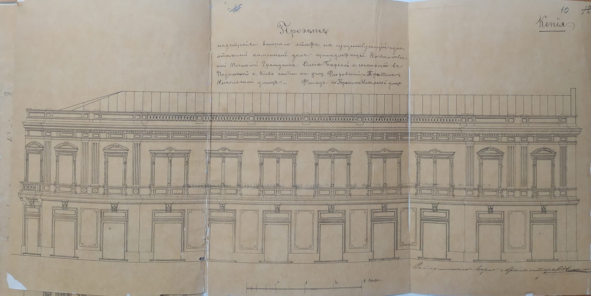 За даними ж ДІАЗ, тут були лавки купця Єфима Митюка, що дивом уціліли після пожежі 1811 року. А у 1854–1855 роках на ділянці спорудили кам’яну двоповерхову прибудову до одноповерхових лавок.