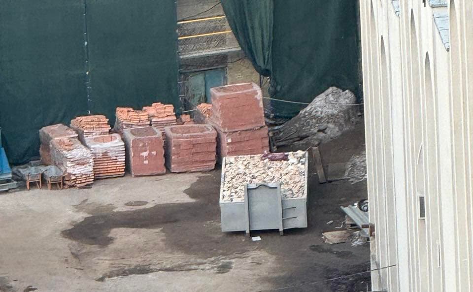 «Минуло півроку і... нічого вдіяти не можуть, бо будинок і досі не отримав охоронного статусу. А ось будинок — розбирають», — заявляє Дмитро Перов, підкреслюючи, що жовта цегла у контейнері свідчить про те, що розбирають оригінальну історичну кладку.