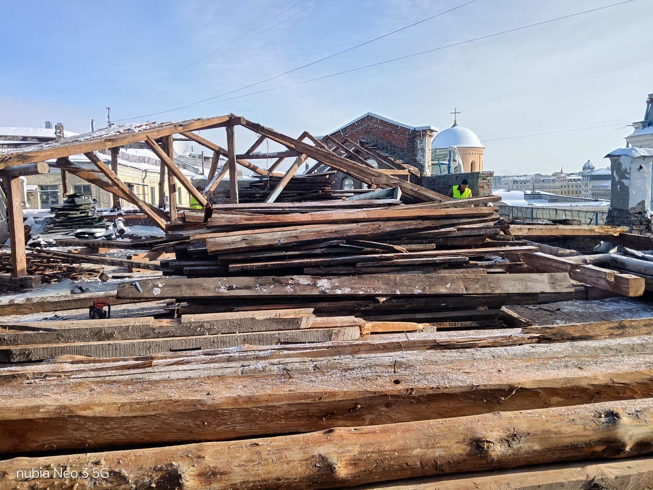 Найбільше запитань викликають роботи на даху. Реставратор Анатоль Ізотов пояснює, що за радянських часів будівлю суттєво видозмінили, надбудувавши поверх та змінивши планування.
