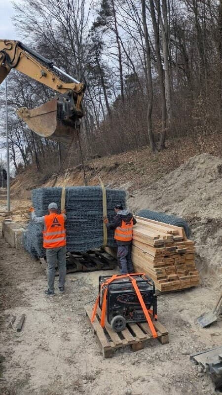 «На вул. Личаківській на виїзді з міста триває інтенсивна фаза робіт — працює важка техніка. Демонтовуємо старі конструкції зі сторони лісу та готуємо основу для нової підпірної стінки з габіонів, що укріпить схил», — пояснив директор ЛКП «Львівавтодор» Микола Власюк.
