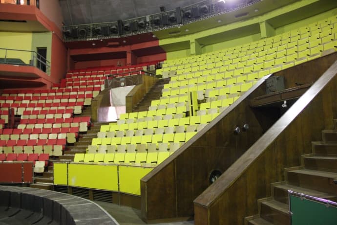 Крісла у глядацькій залі встановили різнокольорові: їхнє забарвлення відповідатиме секторам. Зараз закінчують маркування і регулювання сидінь.