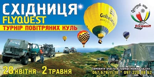 І, нарешті, справжнє свято для всіх, кому не байдужий активний відпочинок та екстремальний спорт. З 28 квітня по 2 травня в смт. Східниця, неподалік від Трускавця Львівської області, пройде турнір повітряних куль "Східниця Fly Quest".