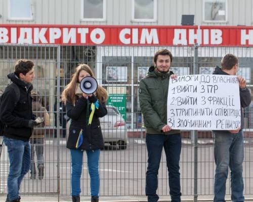 4. Два місяці тому учасники Євромайдану у Львові першими оголосили економічний бойкот партії влади. Список компаній, які належать членам Партії Регіонів, облетів інтернет. Активісти з гаслами "Бойкот фінансистам кривавих побоїщ!", "Жодної копійки в общак", "Ти заробляєш — він краде!" роздавали листівки, пікетували крамниці. А ще завантажували спеціальні додатки на мобільні пристрої. У Львові пікетували магазини мережі "Епіцентр", гіпермаркет "Шок", а також крамницю "Родинна ковбаска".