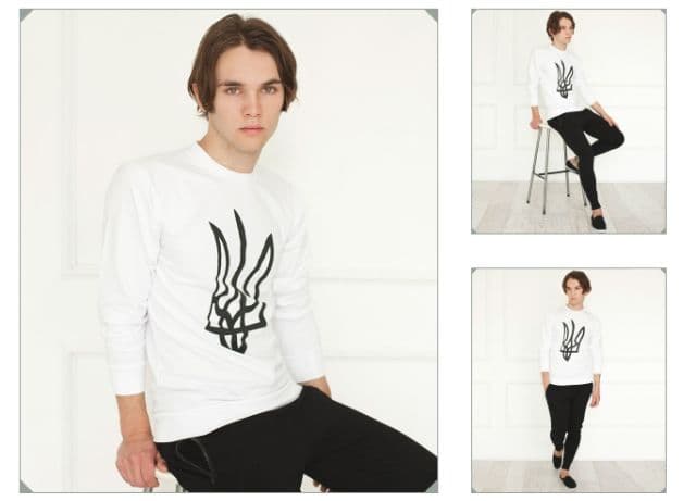 Футболки з чорнийм тризубом на білому тлі, або білим тризубом на чорному тлі українська дизайнерка Ксенія Шнайдер випустила у світшоти ще два роки тому.