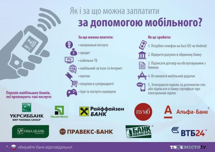 Наразі українські банки тільки починають створювати відповідні додатки. Крім того, кожен банк пропонує унікальний перелік послуг для оплати та установ, тож перед тим, як обрати той чи інший банк, з'ясуйте чи надає він послуги, які потрібні саме вам.
