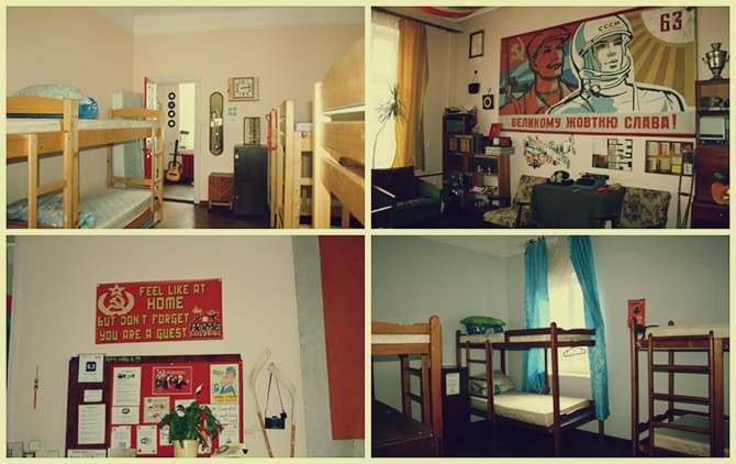 Інтер'єр хостелу одразу впадає в око. Хостел швидше нагадує музей радянської епохи тематичні портрети, плакати з пролетарськими гаслами, самовар, друкарська машинка, старі пластинки, телефони. Меблі також радянські. Тож якщо ви хочете провести ніч у товаристві товариша Леніна – вам сюди!