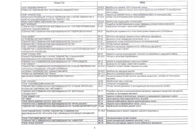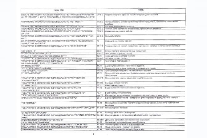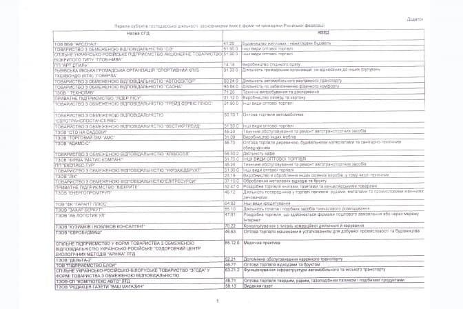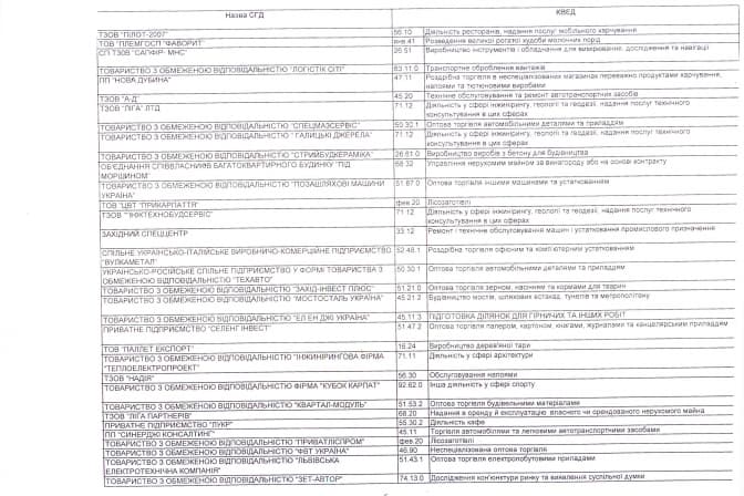 Подаємо перелік підприємств, наданий Йосифом Ситником (клацніть для збільшення):