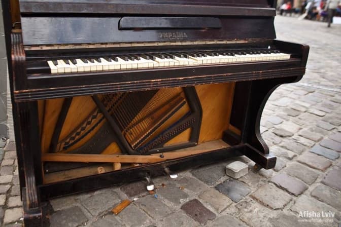 Інструменти за літо зовсім втратили свій вигляд: клавіші вже не б’ють по дерев’яних молоточках, кришки не закриваються, середина потрощена, а чохол до одного з них райтери розфарбували балончиками. Обидва фортепіано місту подарували: харківчанин та львів’янин, пише ZAXID.NET.