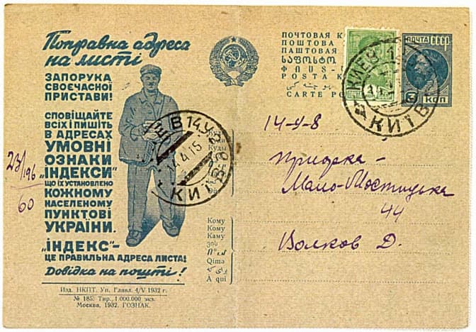 У 1932 році в Харкові була створена унікальна система маркування листів. Спочатку в ній використовувалися цифри від 1 до 10, а пізніше формат змінився на число-буква-число. З початком Другої світової війни цю систему індексації скасували, однак пізніше продовжили використовувати в багатьох країнах світу.