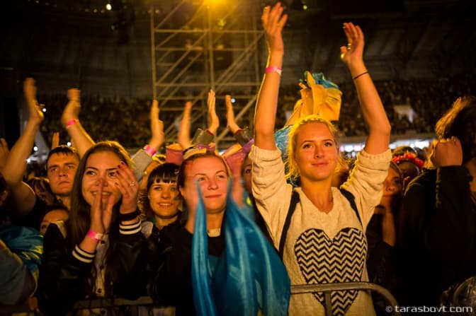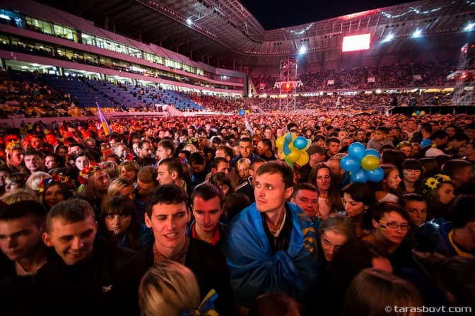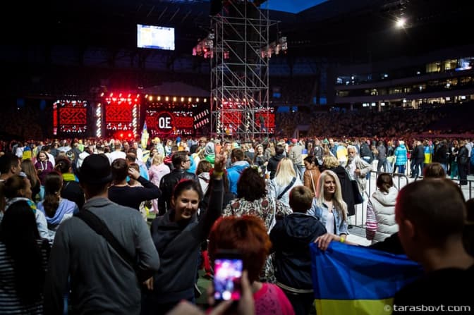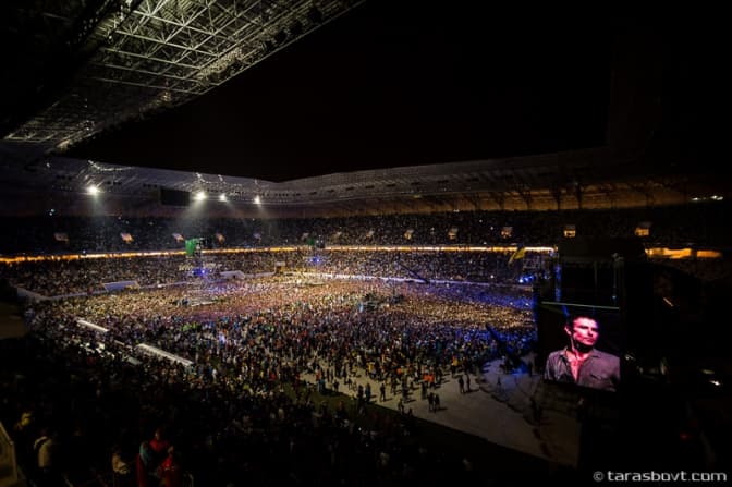 Посеред концерту 40 тисяч голосів разом виконали гімн України.