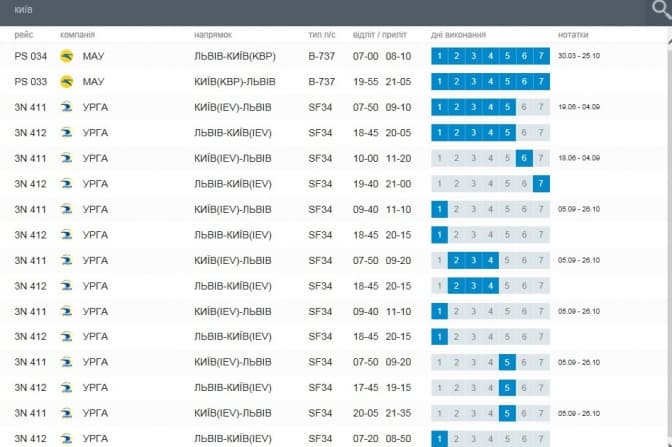 Прінт-скрін з сайту аеропорту