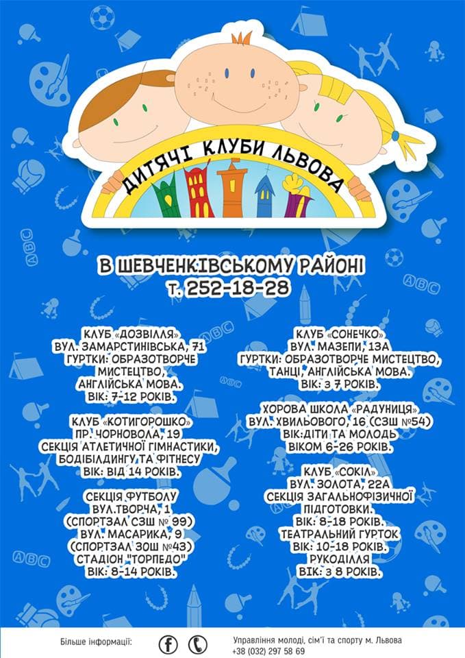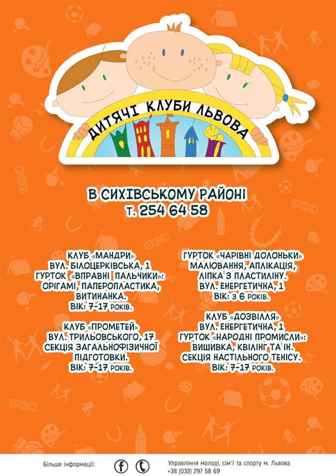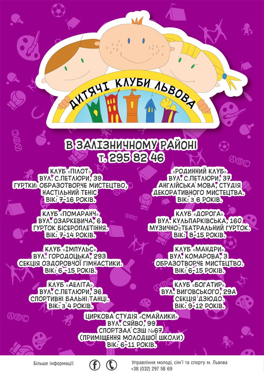 Більше інформації про гуртки Дитячих клубів Львова можна отримати за номерами телефонів: