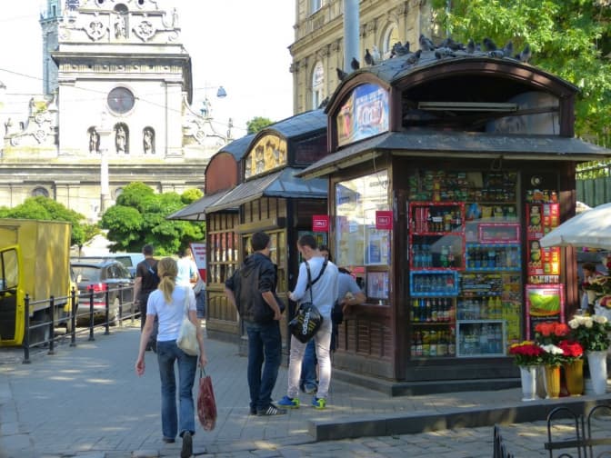 6. Стилізовані кіоски, що пасують до міста (площа Галицька).