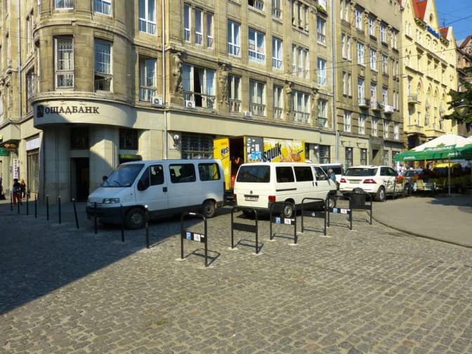 7. Велопаркінги, які водночас обмежують неналежне паркування (площа Галицька).