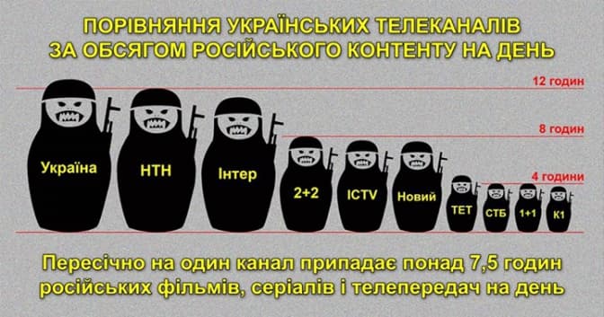 Аби продемонструвати масштаби проблеми, активісти почали моніторити основні українські телеканали і заявили, що результати «приголомшливі»: виявилося, що деякі канали інколи демонструють понад 15 годин російського контенту на день.