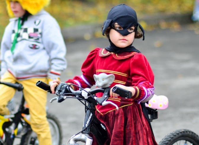 Карині 5 років. «Батьки кажуть, що я виграла заїзд на велосипедах, як найгарніша принцеса. Я сама захотіла так вдітися, бо це красиво», – розповідає дівчинка.