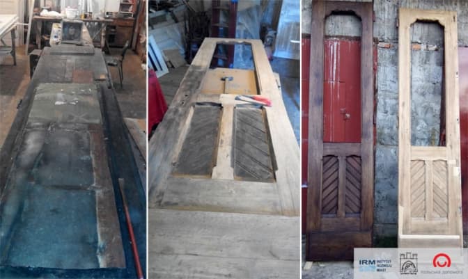 Про особливості роботи з цим об’єктом розповів реставратор Олександр Савчук: «Відновлювальні роботи тривали півтора місяці. Двері були покриті маслянистою речовиною, завдяки якій збереглися у досить гарному стані, але цей шар потрібно було очистити. Окрім того, були зашиті усі вставки, замінені завіси».