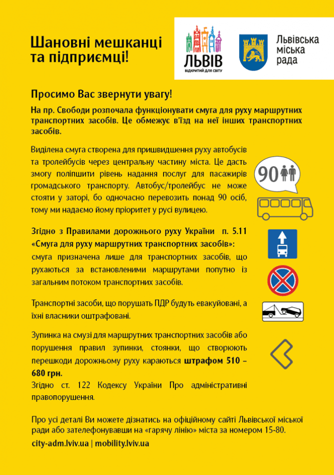Штраф накладатимуть за «зупинку на смузі для маршрутних транспортних засобів, або порушення правил зупинки, стоянки, що створюють перешкоди дорожньому руху» (ст. 122 Кодексу про адміністративні правопорушення).