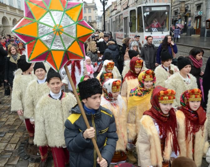 4. Кутя і вертепи. Також у цей день біля дідуха заправляють велику міську кутю, якою частують всіх охочих. І колядують великим вертепом. Ви можете долучитися до колядників і святкувати з ними.