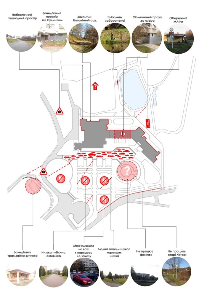 - вирішення проблем орієнтації на місцевості: врахування нових шляхів, використання інфографіки, додаткове освітлення території