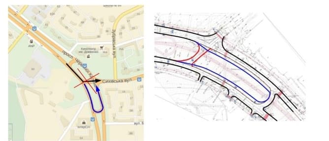 В проекті передбачено зберегти існуючий прямий поворот з пр. Червоної Калини на вул. Сихівську. Натомість активісти пропонують не реалізовувати цього, а забезпечити влаштування кільцевого руху з можливим розширенням проїзної частини на одну смугу руху. Це дасть змогу ліквідувати одну проблемну точку перетину трамвая з інтенсивним транспортним потоком.