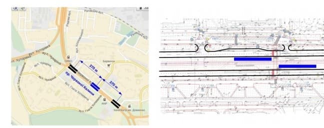 Пропонуємо не реалізовувати підземного пішохідного переходу в районі перехрестя пр. Червоної Калини - вул. Чукаріна, а наблизити зупинку трамваю до регульованого пішохідного переходу. Це дасть змогу зменшити відстань пішого руху до зупинки та, відповідно, підвищити привабливість трамвая.