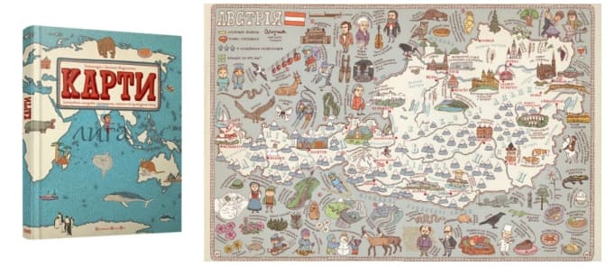 Чудовий географічний атлас, що охоплює 42 країни світу, насамперед привертає увагу деталізацією характерних символів певних країн: пам’яток природи, національних страв, відомих постатей тощо.