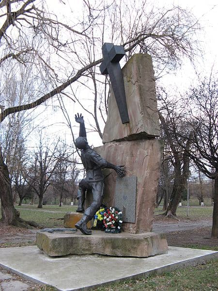 Пам'ятник споруджений на місці, де у 1911-1939 роках розміщувався спортивний майдан із колоритною назвою "Український город". Належало це спортивне поле громадсько-політичному і гімнастично-пожежному товариству "Сокіл-Батько". "Український город" був закладений на місці колишнього велотреку. Для викупу цієї території "Сокіл-Батько" видав 20 тисяч карток вартістю 5 корон, за які кожен охочий міг стати власником одного квадратного метра цієї території.