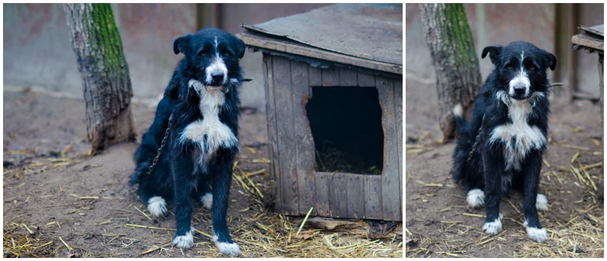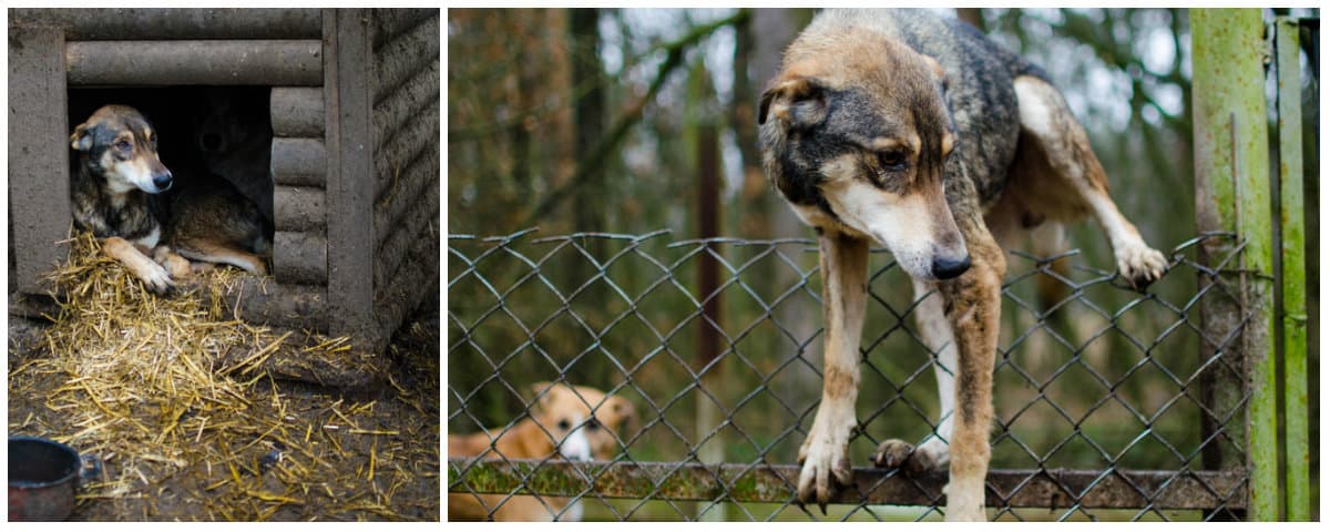 «Мешканці» притулку дуже налякані: трусяться, ховаються в будки. Директор каже, що колись їх дуже образили, тож тепер вони бояться довіритися людям. Але більшість собак намагається справити враження. Підходжу до вольєра – один пес гавкає, другий танцює, третій дивиться так, що аж серце стискається, але є й ті, які не реагують на гостей взагалі – чи вже звикли до того, що далі споглядання не доходить, чи просто втомилися боротися за увагу людей, які все одно не заберуть...