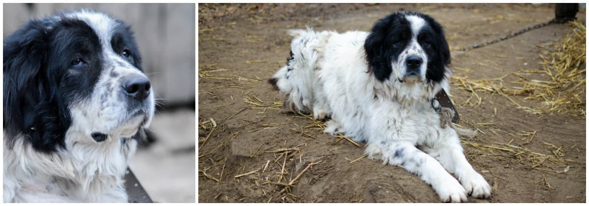 Я одразу побачила великого біло-чорного московського сторожового, який дуже виділявся на сірому фоні немитих вольєрів. Пані Наталя сказала, що це – один з їхніх старожилів Джек: «Його викинули на вокзалі. Нам подзвонили зі служби відлову і ми перевезли його до притулку. Джек тут вже 5 років. Коли він у нас з'явився, йому було близько 6 років, зараз – 11».