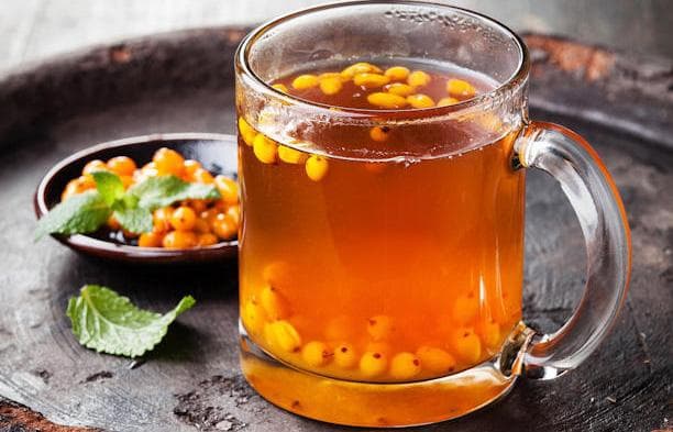 Ягоди обліпихи добре промий, 2/3 частини помни ложкою на пюре. У чайник поклади обліпихове пюре, решту ягід і чорний чай. Залий усе окропом, загорни і дай настоятися 10-15 хвилин. Готовий чай розлий через ситечко, додавши мед до смаку. Можеш готувати цей напій без додавання чорного чаю.