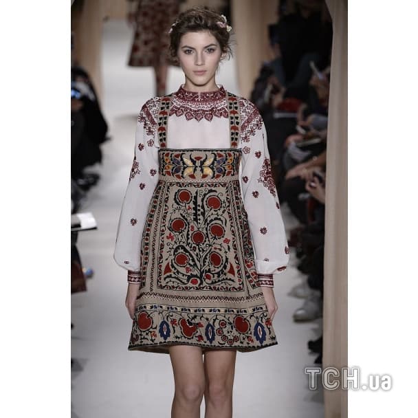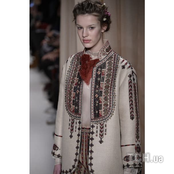У Парижі триває Тиждень моди Haute Couture. Дім Valentino цього разу вивів на подіум моделей у вишиванках, жупанах та жилетках з овчини. Італійський бренд звернувся до етнічних елементів у костюмі.