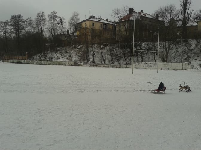 На фото: стадіон одного з львівських вишів, куди підопічні домашнього дитячого садочка приходять на прогулянки