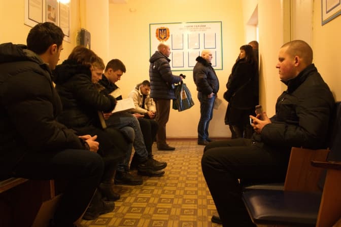 36-річний мешканець Шевченківського району п. Андрій прийшов сюди навіть без повістки. Каже, людина, що мала вручити повістку не застала його вдома, однак, про те, що його викликають до військкомату він дізнався від рідних, і прийшов сам. «Треба значить треба. Дружину теж можуть призвати – вона медсестра. Якщо мене призвуть, то її призвати вже не зможуть, бо хтось має доглядати сина», - каже він. Чоловік зізнається – страх перед війною є, однак, додає: «готовий чи ні, а треба йти, відвойовувати своє».