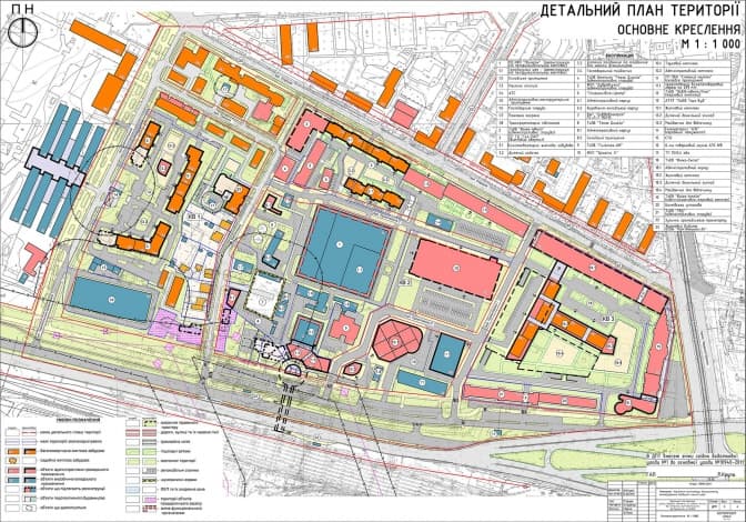 Але якщо подивитися на детальний план території, то виявляється, що ним таки передбачено демонтаж частини корпусів та будівництво на їхньому місці житлових будинків.