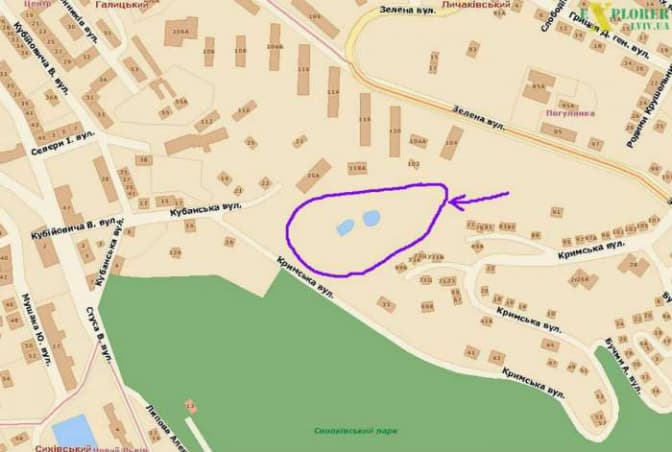 Котеджна забудова територій парку, прилеглих до колишньої купальні, фото 2012 року