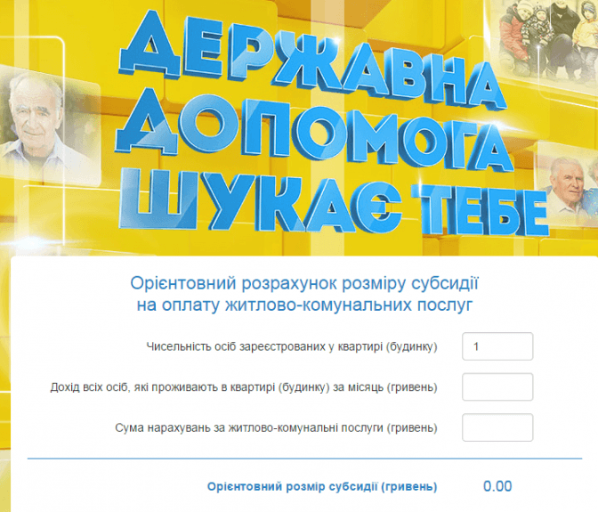 Орієнтовний розрахунок субсидії на оплату житлово-комунальних послуг відтепер можна зробити в режимі онлайн. Спеціальна сторінка на сайті Урядового порталу легка у користуванні. Необхідно ввести лише три види даних: кількість мешканців, розмір доходу та витрати на послуги ЖКГ.